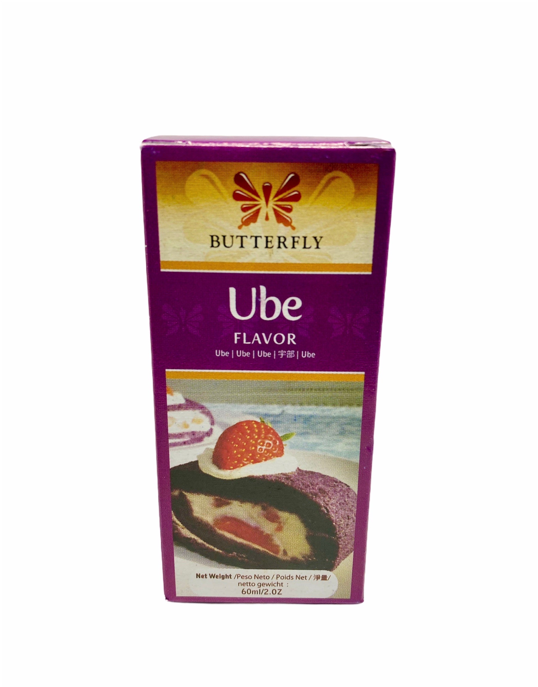 Ube flavoring extract by Butterfly, flavor enhancement that can be used in baking, ice cream, and various desserts. It is an artificial flavor.